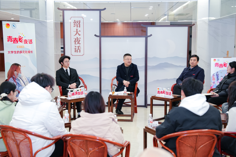 12月19日晚,“绍大夜话”第二十六期之“青春夜话”第十八期在行政楼三楼中庭举行。副校长陈均土与14名本硕学生代表围绕“大学生的多元化成长”面对面交流,共话青年成长与发展。校党委委员、宣传部部长宋浩成,办公室、学工部、研工部、计财处、团委等相关部门负责人参加活动。