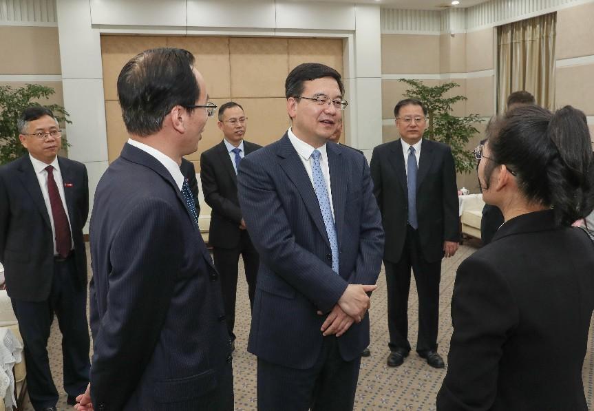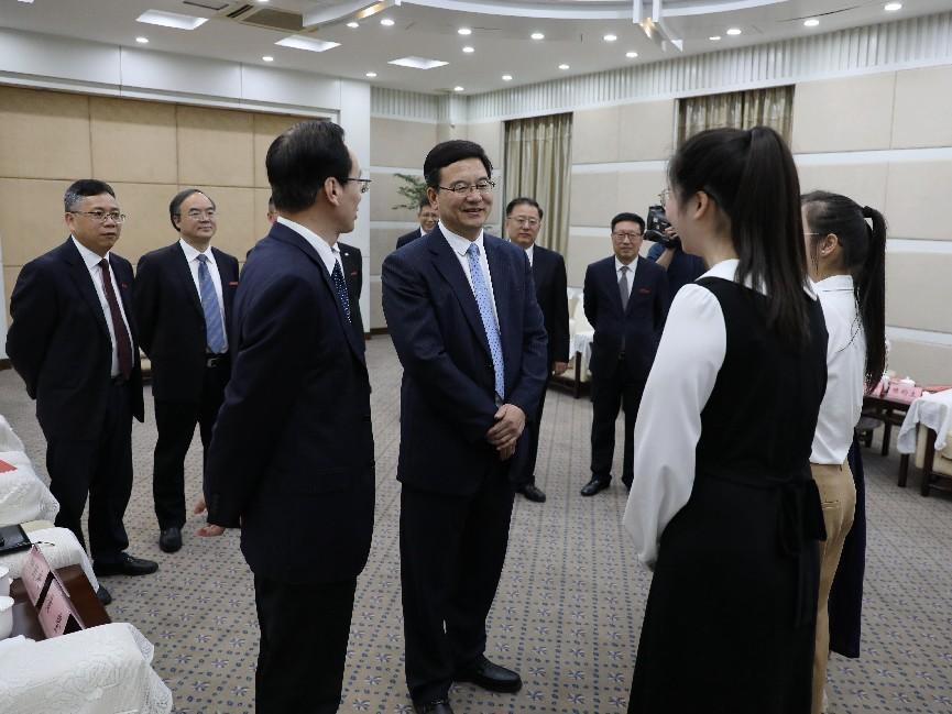 颁奖典礼之前,盛阅春在铁城科教馆二楼接待室与获奖师生亲切交谈。