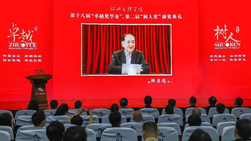 5月18日上午,校第十八届“卓越奖学金”、第二届“树人奖”颁奖典礼在铁城科教馆报告厅隆重举行。“卓越奖学金”“树人奖”倡设者、第十二届全国政协副主席、中国科协名誉主席、北京大学科学技术与医学史系创系主任韩启德院士,北京大学燕京学堂名誉院长袁明教授通过网络直播在线方式出席典礼。绍兴市委书记盛阅春,绍兴市委常委、副市长王涛,校党委书记汪俊昌、校长王建力等出席颁奖典礼。