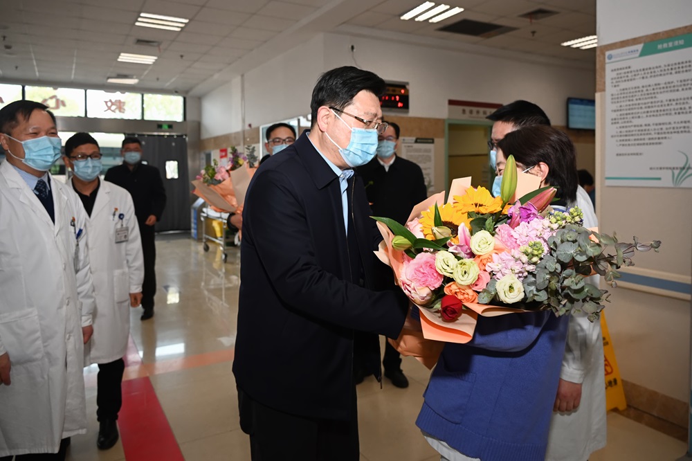 崔凤军一行先后来到校警务站、学校改扩建专班办公室、河西配电房、河西学生公寓成章书院、南山校区门卫、南山校区食堂、附属医院、兰亭校区等,亲切慰问了寒假期间依然坚守岗位认真履职的教职员工,向他们致以诚挚的问候,并代表学校党委行政送上了新春祝福和慰问品。