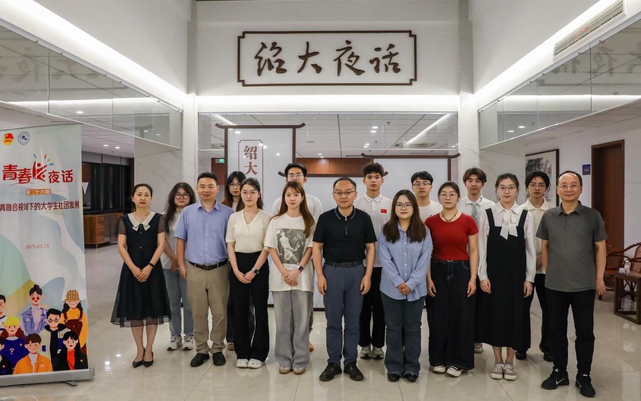 5月15日晚,“绍大夜话”第三十四期之“青春夜话”第二十六期举行。校长赵阳与社团负责人代表共同探谈五育融合视域下大学生社团的创新与成长。学校办公室、学工部、研工部、团委相关部门负责人及多位经验丰富的社团指导老师代表参加活动。
