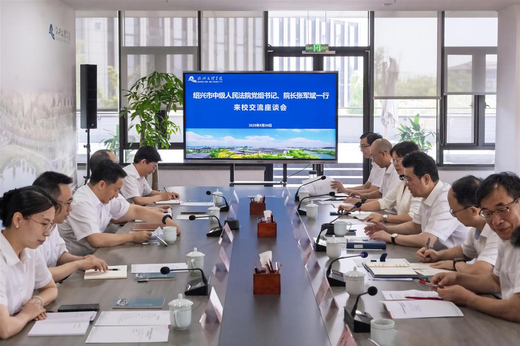 5月30日上午,绍兴市中级人民法院党组书记、院长张军斌一行来校,与校党委书记崔凤军座谈交流。