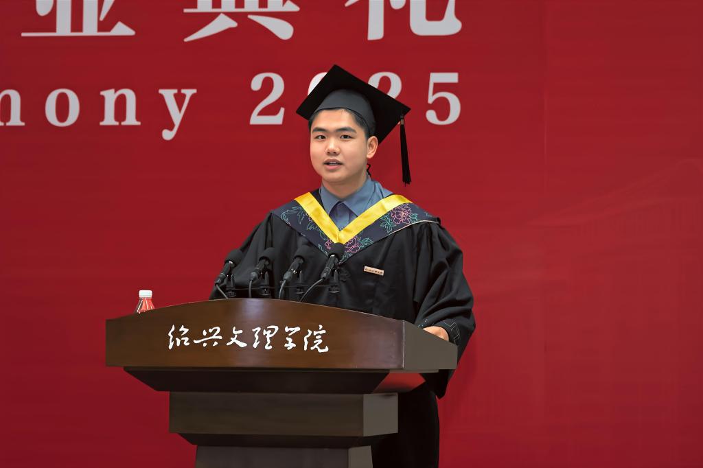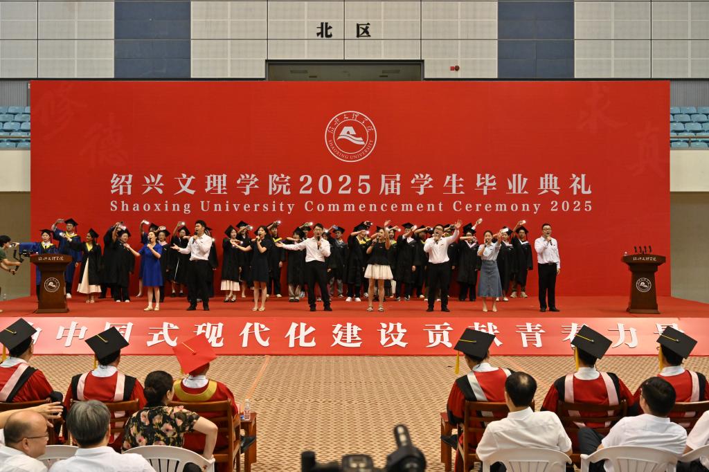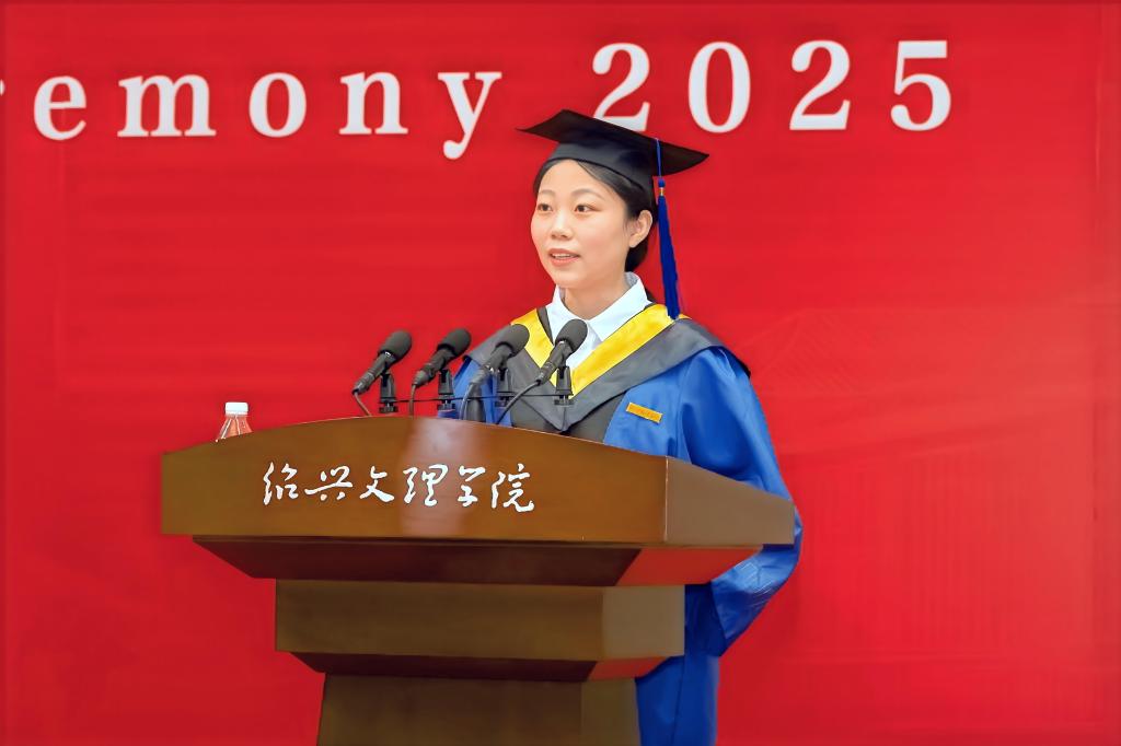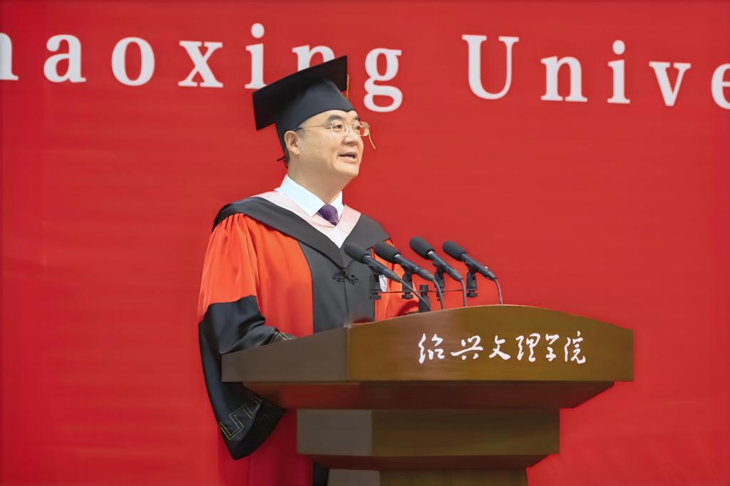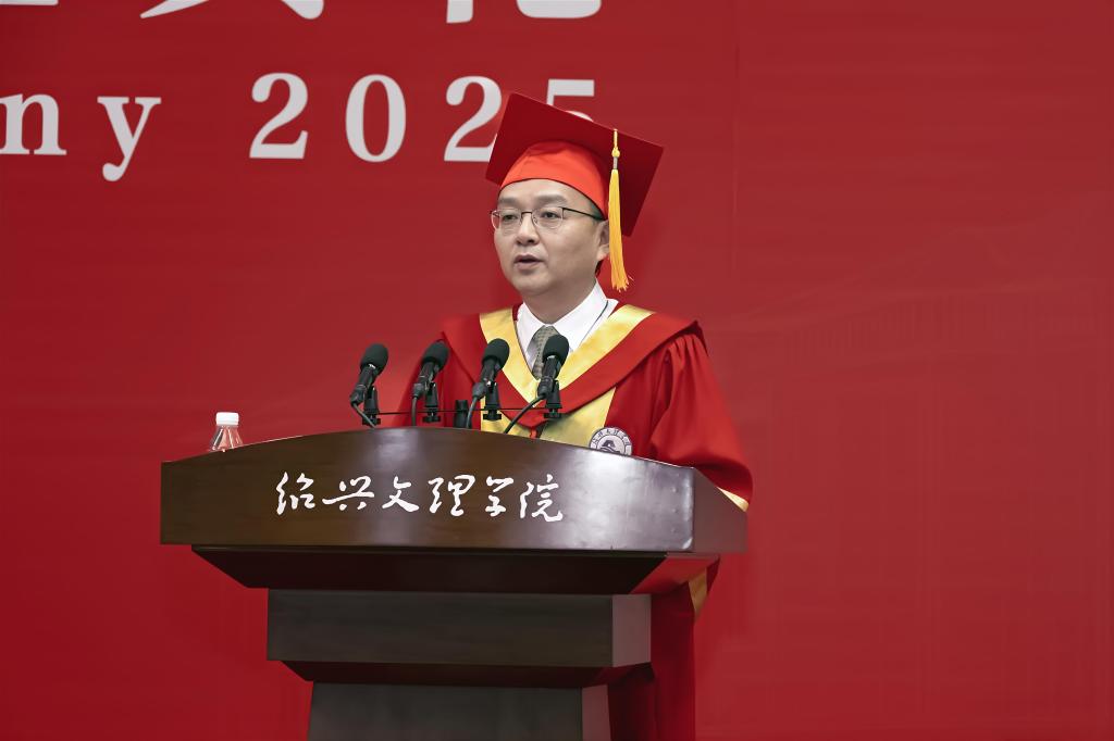 赵阳以师长的身份,将绍兴最具代表性的文化符号化作对毕业生们的殷切期待,勉励毕业生们承载镌刻着历史智慧的文化印记,砥砺奋进,勇毅前行,在实现中华民族伟大复兴的时代征程中书写精彩华章。他强调,要执“绍兴之剑”,勇立时代潮头。牢记习近平总书记的谆谆嘱托,勇担“谱写新时代胆剑篇”的历史使命,执仗信念之剑,磨砺学识之剑,挥扬担当之剑,让个人理想与祖国命运同频共振,努力成为可堪大用、能担重任的栋梁之才。要挥“绍兴之墨”,坚持守正创新。坚持“守正”理念不动摇,持续“创新”思维不停歇,始终保持锲而不舍的心态,走在创新创造的时代前列。要酿“绍兴之酒”,接续勤学笃行。坚持终身学习的理念,永葆砥砺奋斗的激情,树立无私奉献的精神,在奉献祖国、奉献人民中绽放青春的绚丽之花。