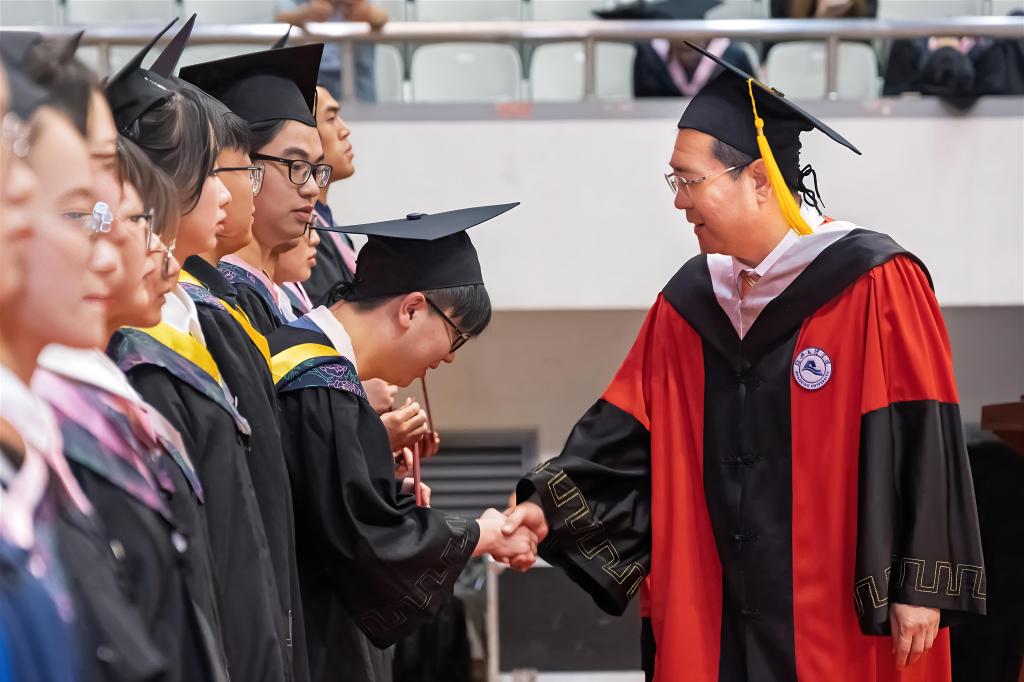 典礼在师生青春洋溢的歌舞和深情的朗诵中开始。伴随着师生合唱校园歌曲《风则江畔》,毕业典礼落下帷幕。