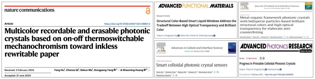 近日,我校化学化工学院浙江省精细化学品传统工艺替代技术研究重点实验室齐陈泽教授团队杨东朋博士与国科大杭州高等研究院黄少铭教授合作,设计制备了具有明亮结构色的新型热/力致色变光子晶体功能材料,并拓展了其在多级防伪、信息加密、智能窗户、无油墨印刷等领域的应用(1)。相关系列成果以久久精品一区二区|久久久一区二区三区|欧美日韩视频|欧美福利视频|高清欧美性猛交xxxx黑人猛交|久久久www成人免费精品|在线观看成人网站为第一单位、杨东朋博士为第一通讯作者在国际著名期刊Nature Communication、Advanced Functional Materials、Advanced in Colloid and Interface Science、Journal of Colloid and Interface Science发表,并受邀为Advanced Photonics Research撰写综述性论文。