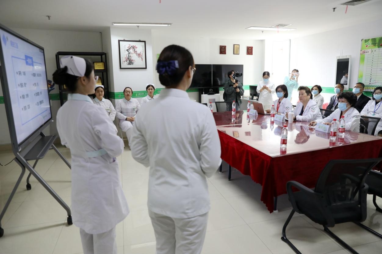 第二阶段会议由姜小鹰主持。护理学专业负责人孙一勤围绕专业发展概况、建设举措、育人特色等内容汇报专业建设情况。专家组就相关问题进行询证。