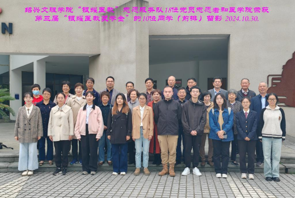 学校“银耀医教”志愿服务队的18位党员志愿者、医学院领导与获奖的10位学生党员、入党积极分子合影留念。