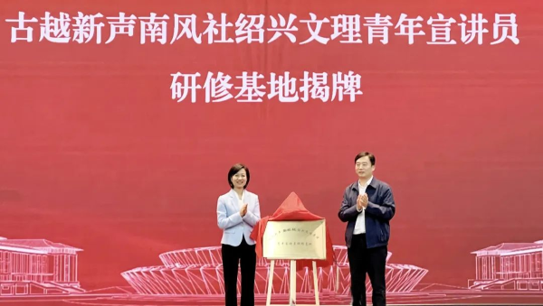 11月11日晚,蔡元培艺术与设计学院与越城区城南街道在铁城科教馆报告厅举行古越新声南风社“艺讲堂”主题宣讲活动暨校地文化战略合作启动仪式。校党委委员、宣传部部长宋浩成,越城区委常委、宣传部部长吴萍,越城区人大常委会副主任钱伟平,越城区委宣传部常务副部长、区新闻办主任胡立钊,城南街道党工委书记倪国峰,蔡元培艺术与设计学院党委书记沈履平、副院长张继钟等出席本次活动。活动由蔡元培艺术与设计学院党委副书记潘晓瑜主持。